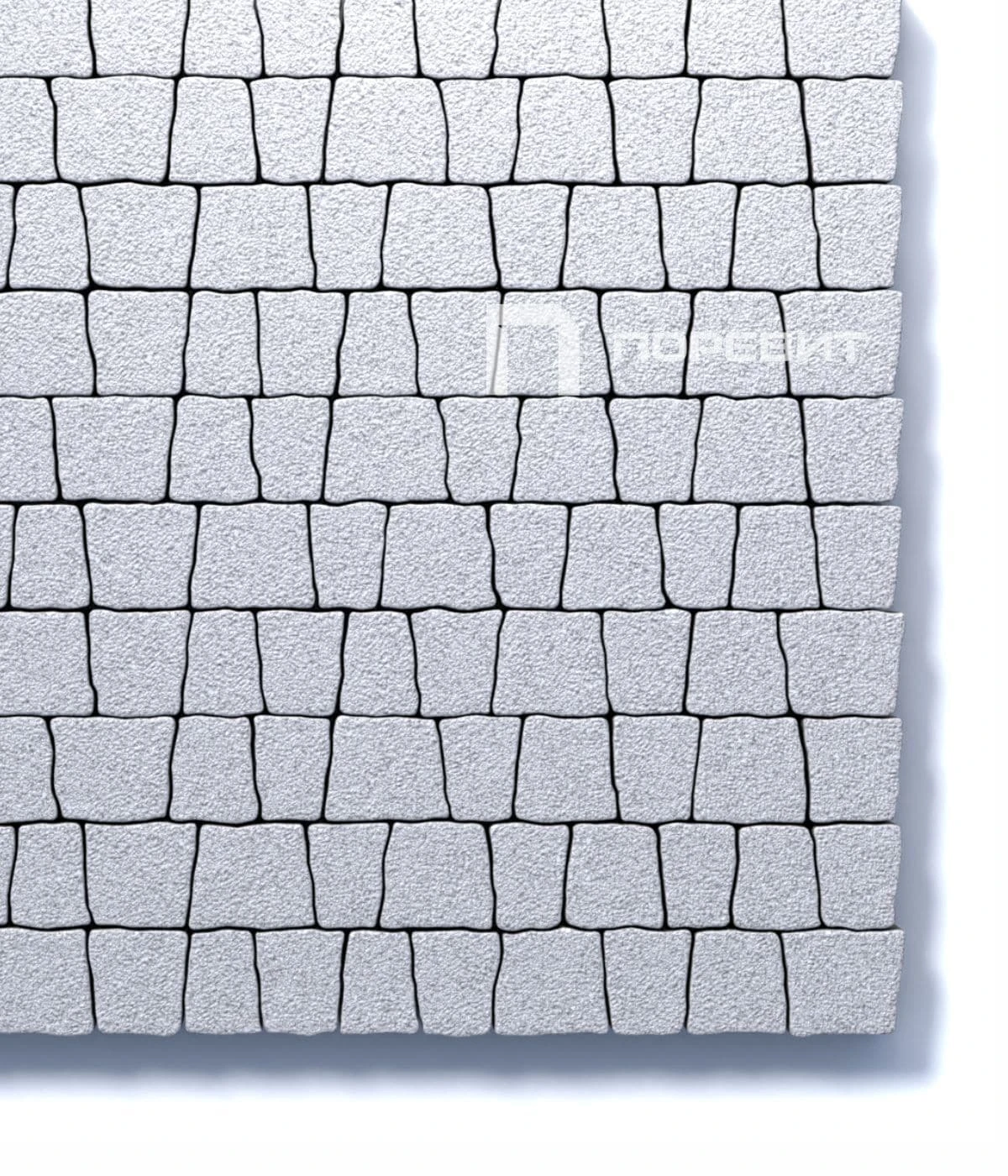 Состоит из 5-и элементов, которые выкладываются в хаотичном порядке рядами. Трапециевидная форма плиты позволяет выполнять как прямую, так и радиусную выкладку. Изготавливается по уникальной технологии методом полусухого вибропрессования из бетона. Брусчатка Абрис изготовлена с добавлением натуральной мраморной крошки белого цвета, отличается высокими физико-механическими свойствами.