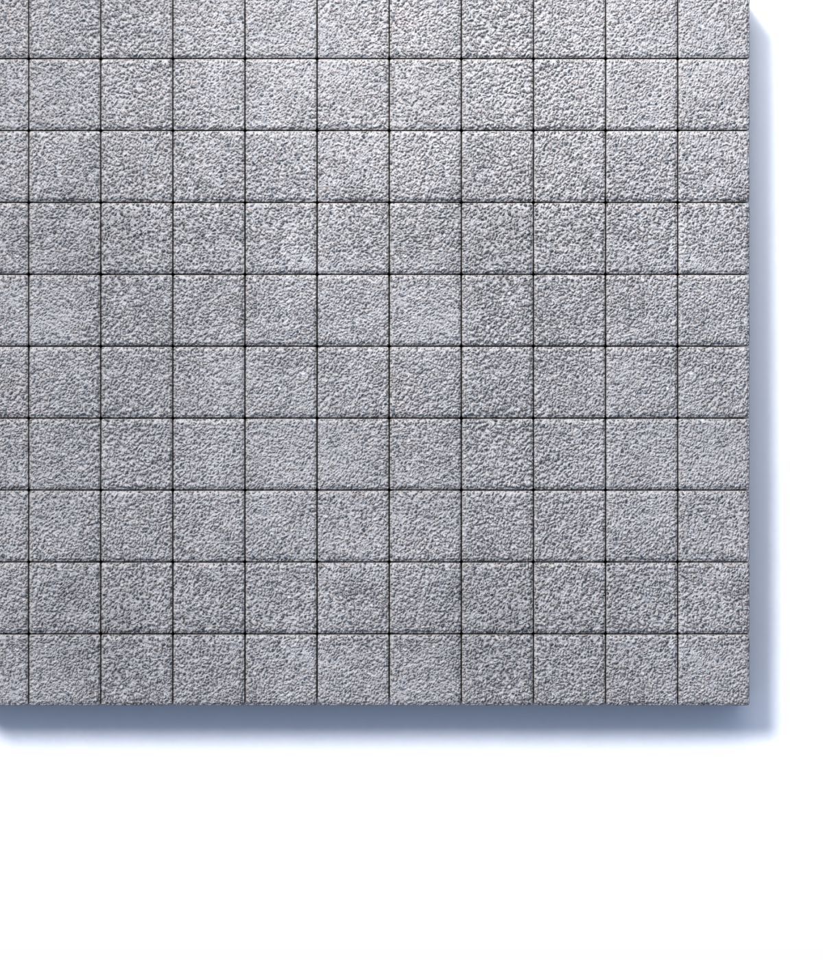 Изготавливается по уникальной технологии методом полусухого вибропрессования из бетона. Поверхность выполнена с оригинальной зернистой фактурой белого цвета. Натуральная гранитная крошка в лицевом слое изделий наделяет плитку приятной шероховатостью, а также устойчивостью к скольжению. Брусчатка Квадрат 100х100 отличается высокой износостойкостью и практичностью в эксплуатации.