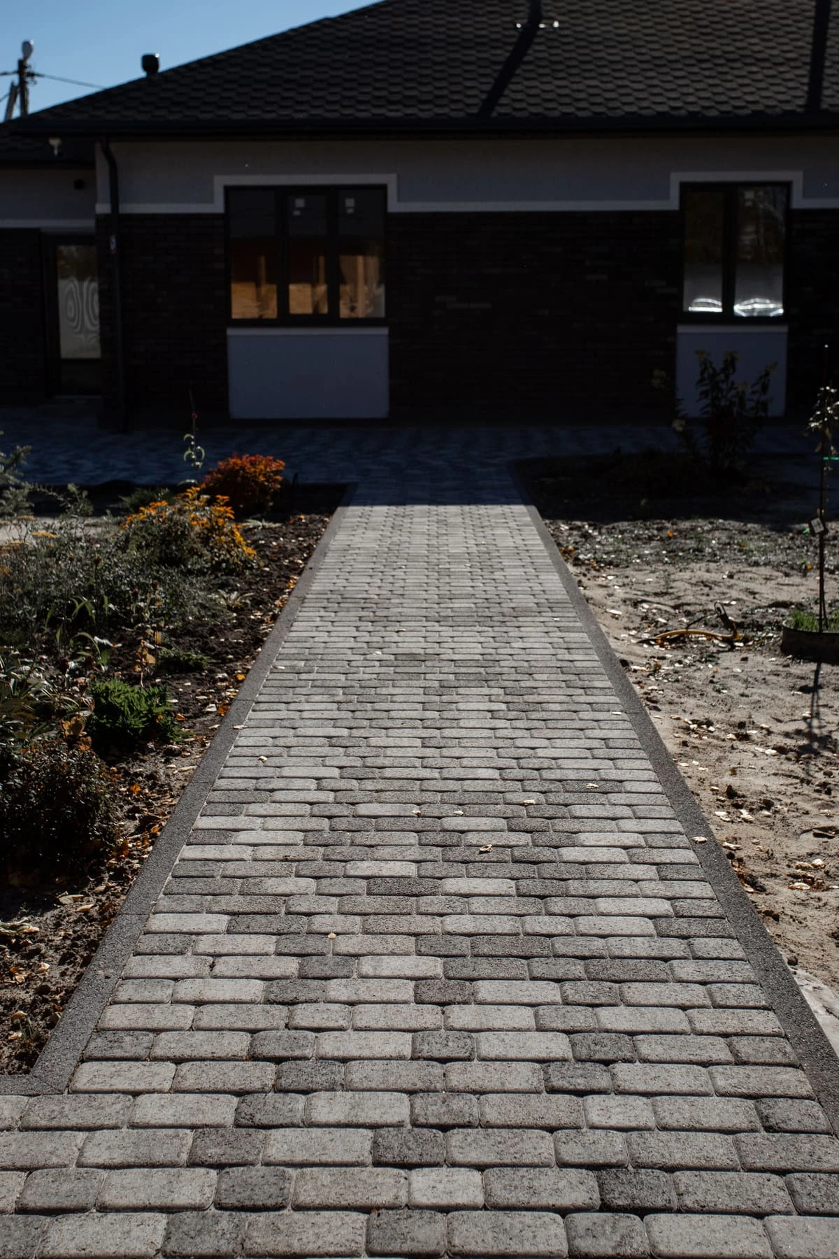 Благоустройство дома: плитка в цвете Антрацит и шаговые дорожки