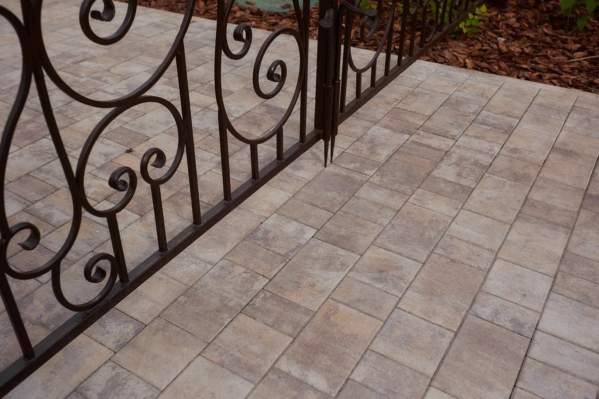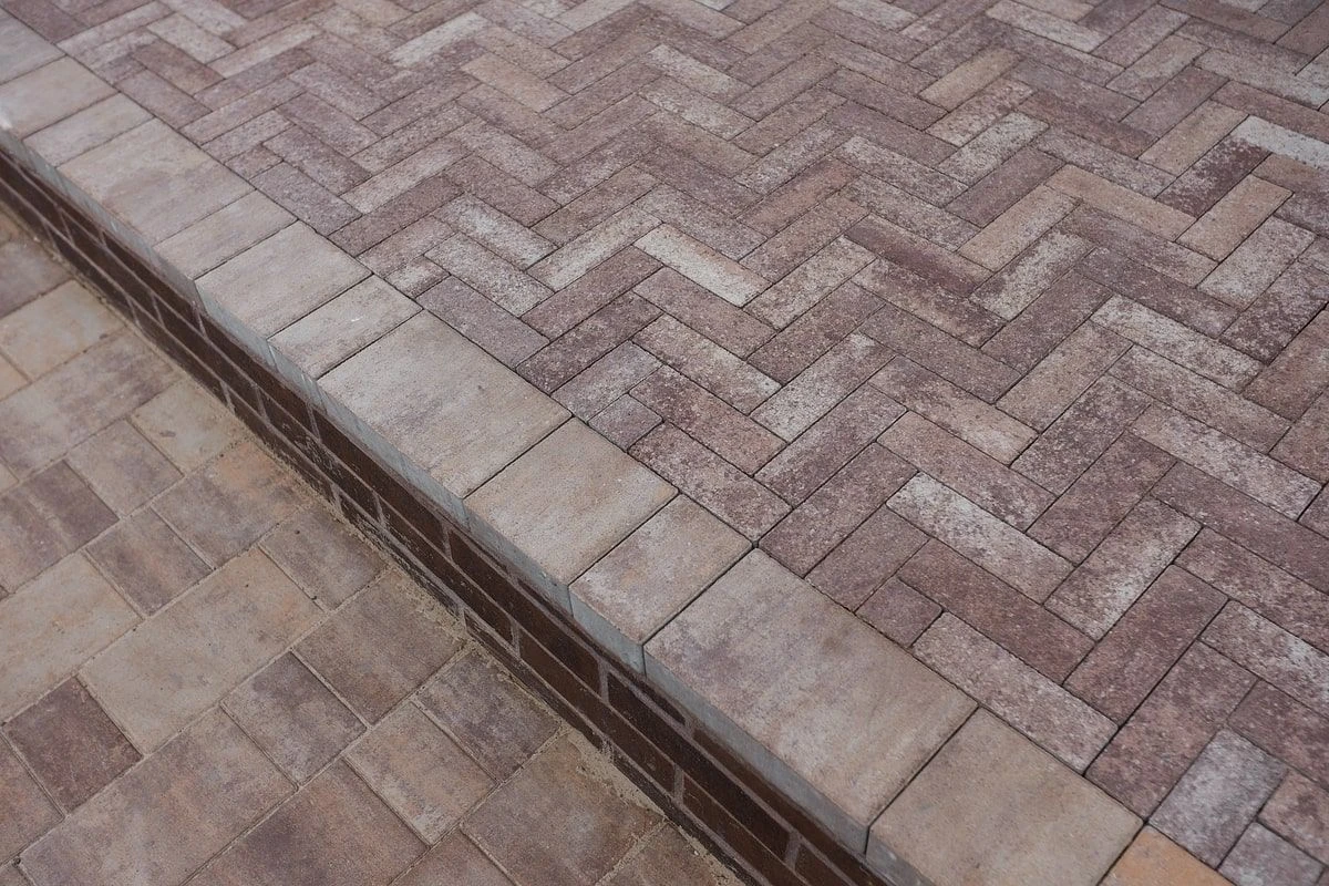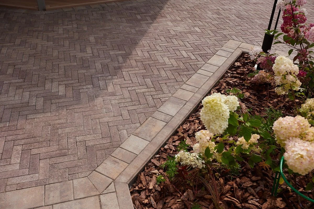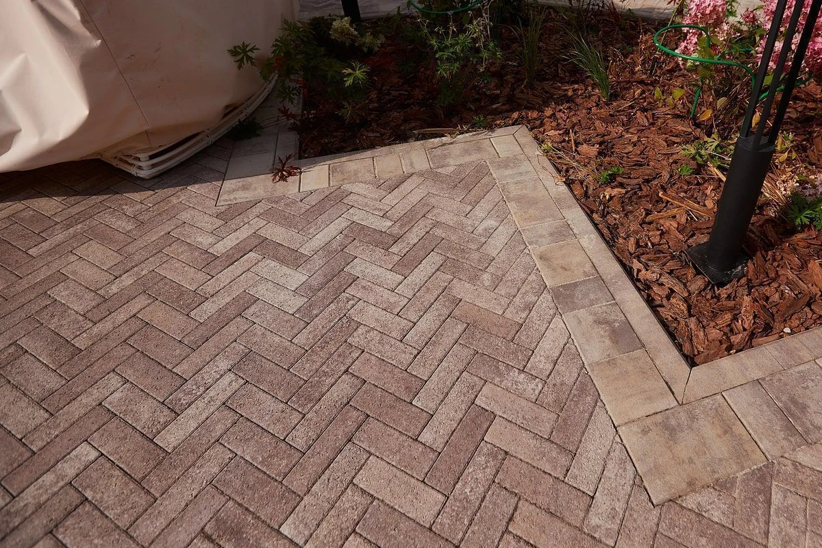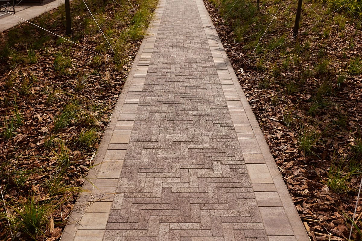 Ландшафтный дизайн участка с укладкой плитки Старый город и Паркет 180х60 в Тюмени.