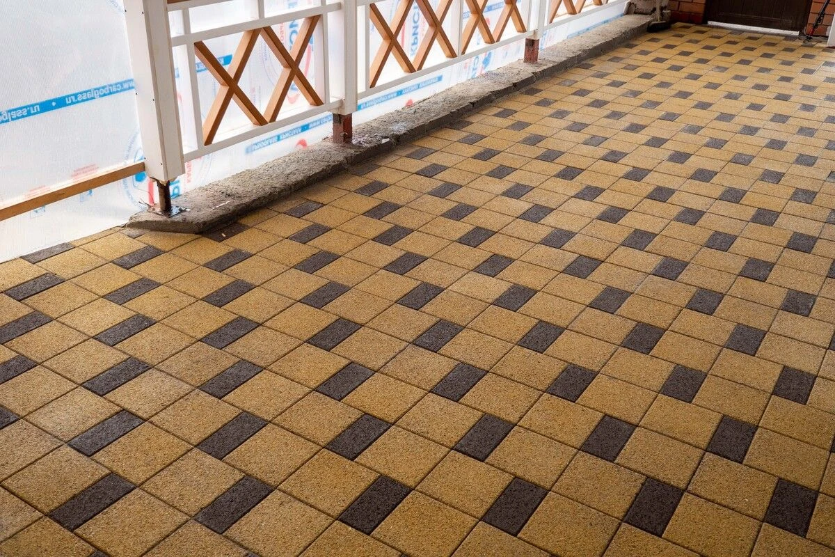 Закончены работы на территории частного домовладения по укладке тротуарной плитки. Заказчик пожелал оформить парковочную зону, пешеходные дорожки и зону отдыха. Для благоустройства использована: тротуарная плитка «Прямоугольник» 200*200 мм, в коллекции Гранит желтого и коричневого цвета плитка Прямоугольник размерами 100*200 мм, в коллекции Гранит коричневого цвета плитка «Абрис» в коллекции Мрамор, бело-черного цвета.