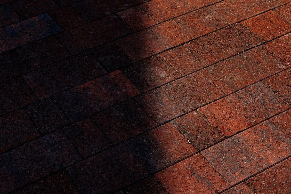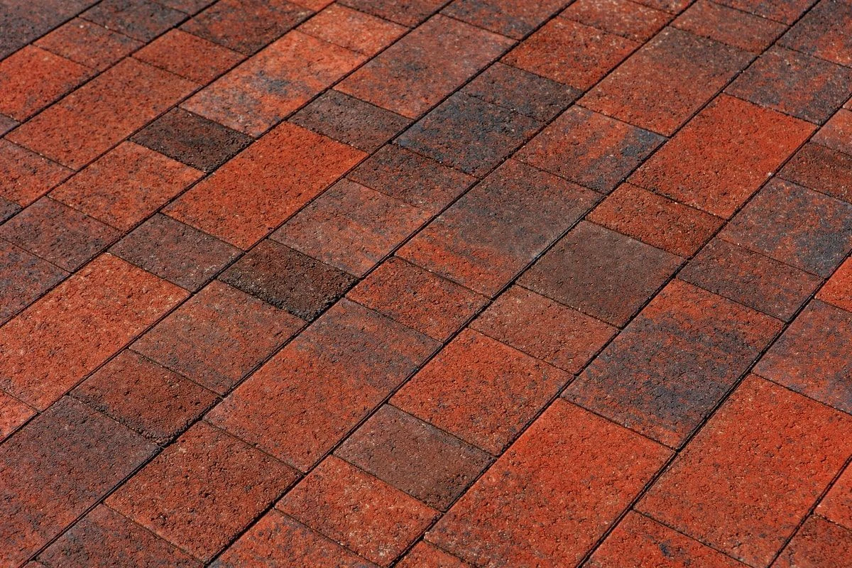 Необычная раскладка тротуарной плиты: комбинация узоров, фактур и цветов.