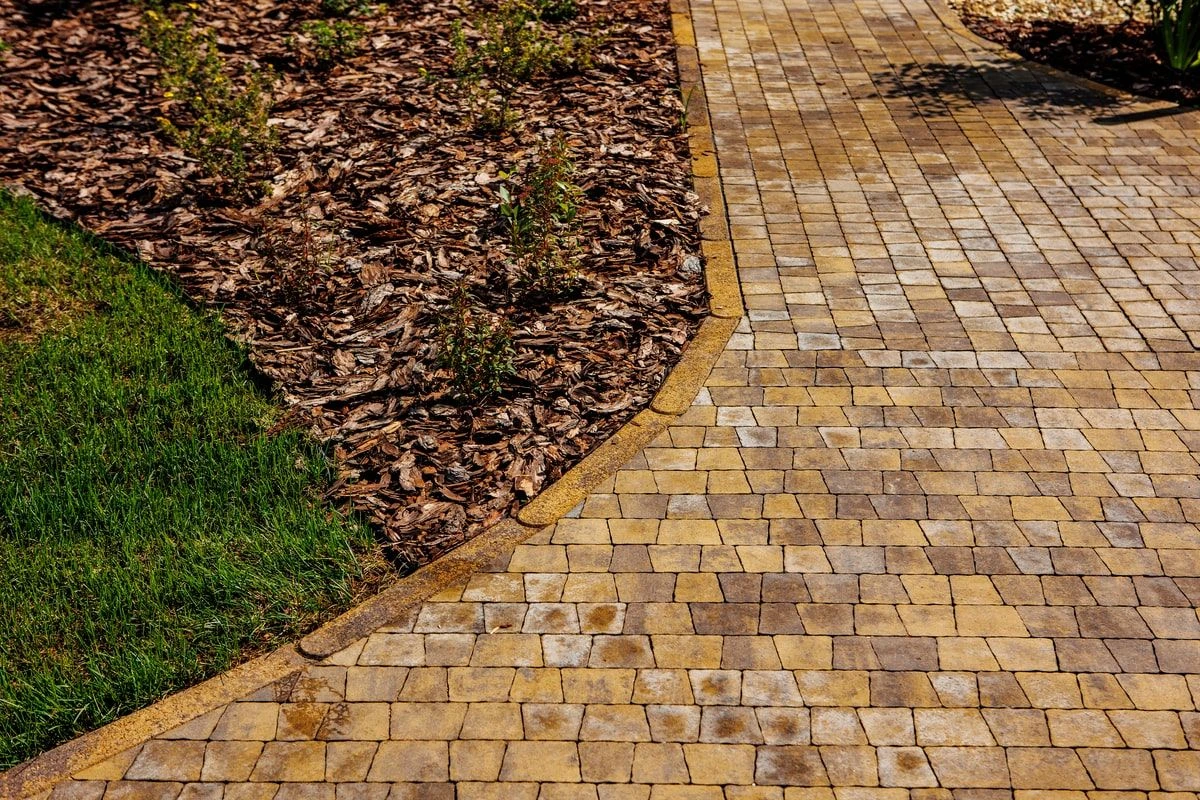 Укладка плитки Литос, белый и Абрис цвет Янтарь в Перевалово