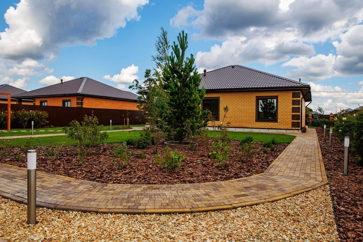 В частном доме в Перевалово выполнен полный комплекс работ по благоустройству: укладка брусчатки и рулонного газона, освещение, автополив, посадка растений и водоотведение. Участок 10 соток. Площадь мощения плиткой 135 кв.м. Для садовых дорожек использована плита Абрис, цвет Янтарь и шарнирные (радиусные) бордюры к ней, а для пошаговых дорожек плита Литос, гладкая белая. Сроки реализации проекта - 1,5 месяца. Материалы были закуплены заранее.