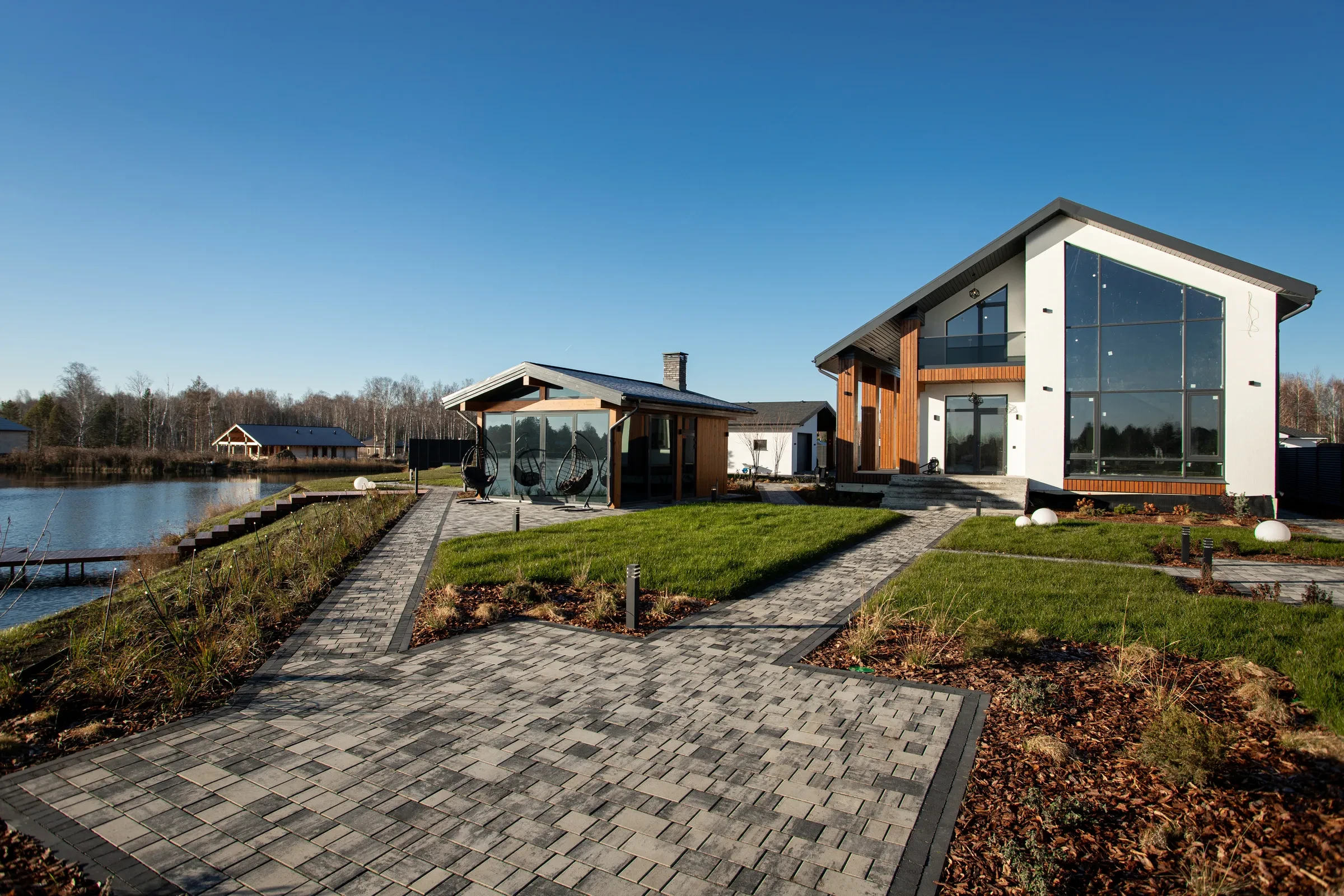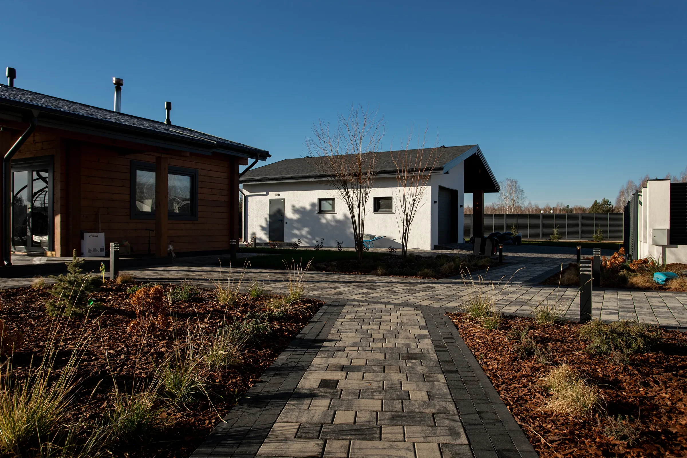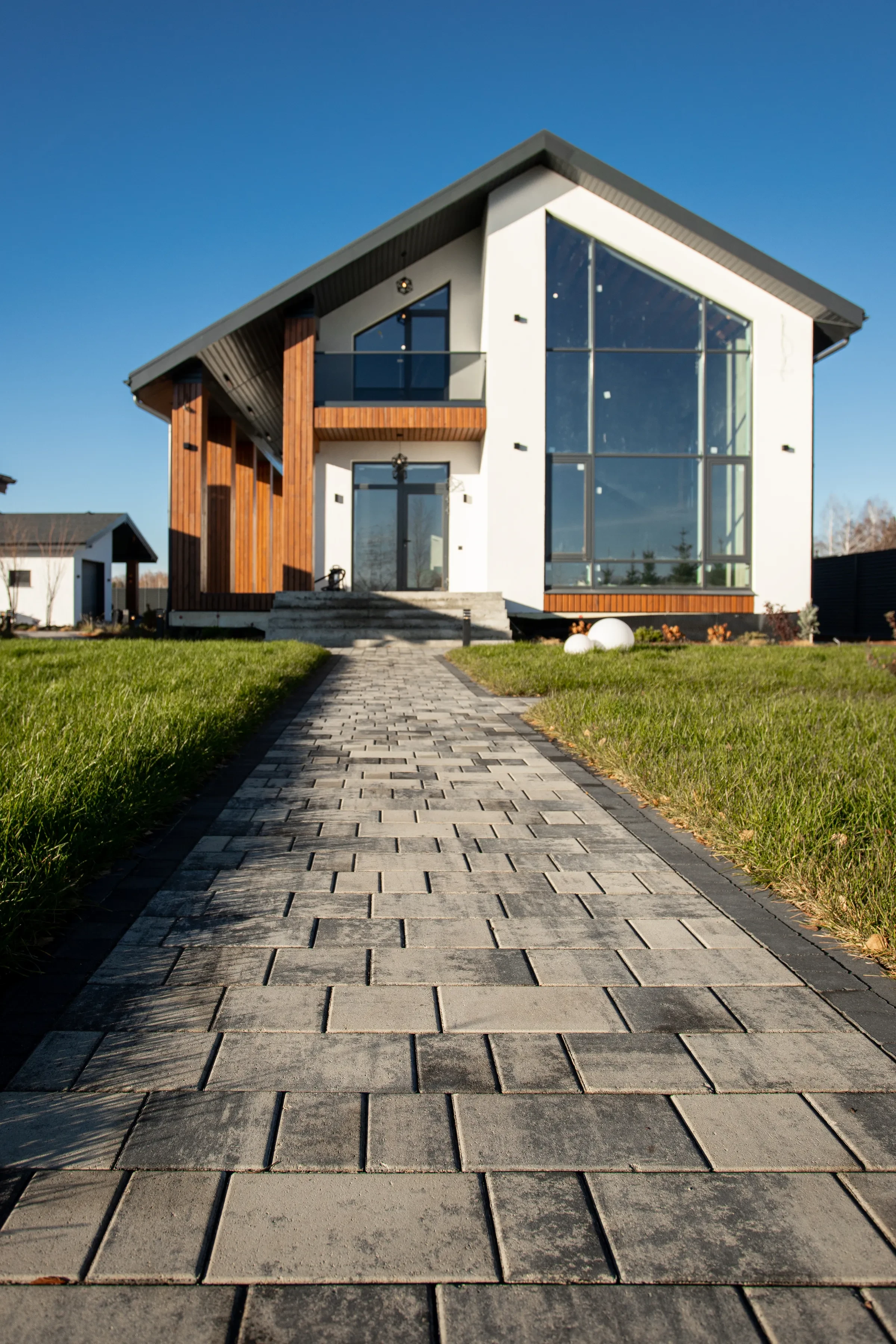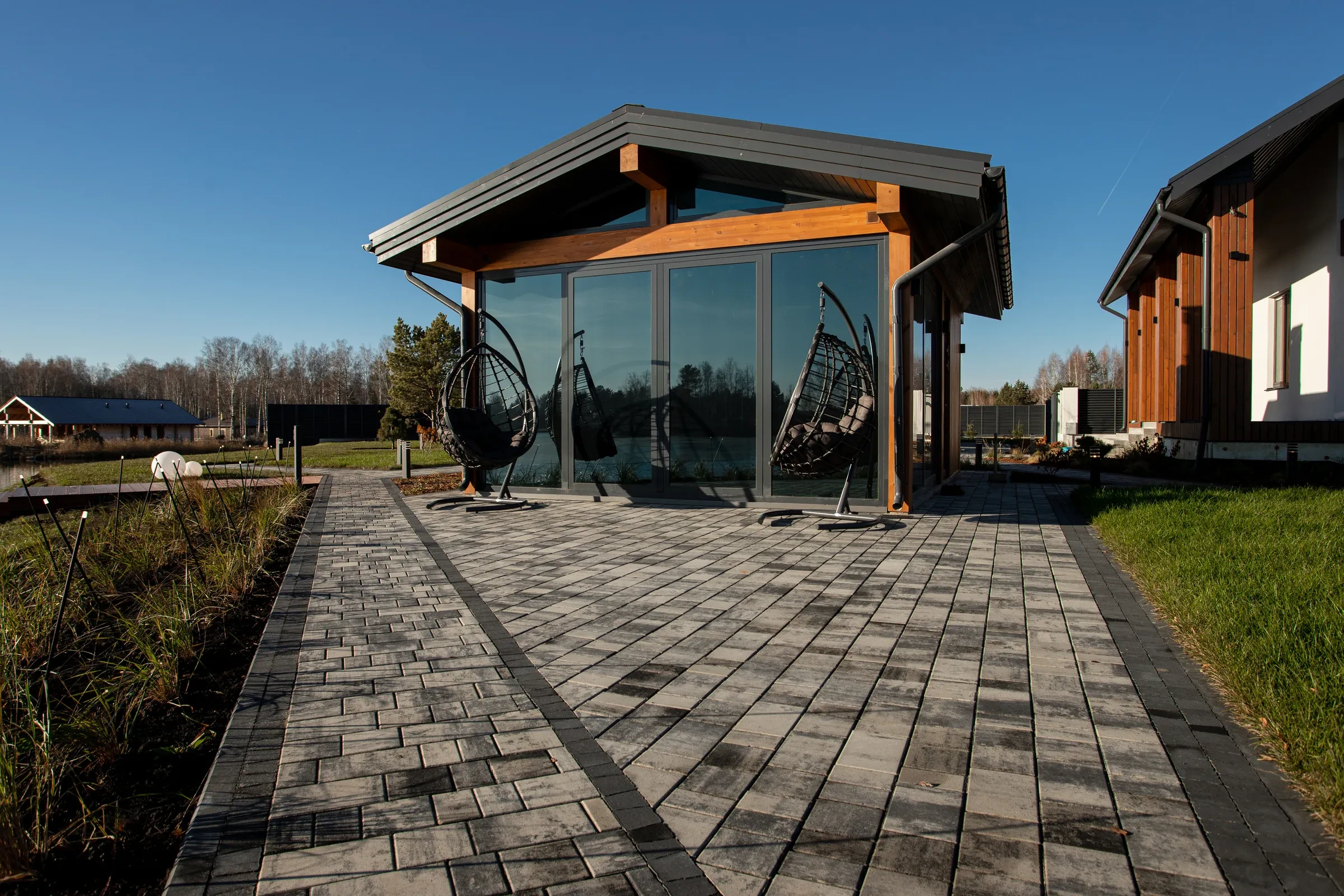 • Благоустройство дома: плитка в цвете Антрацит и шаговые дорожки