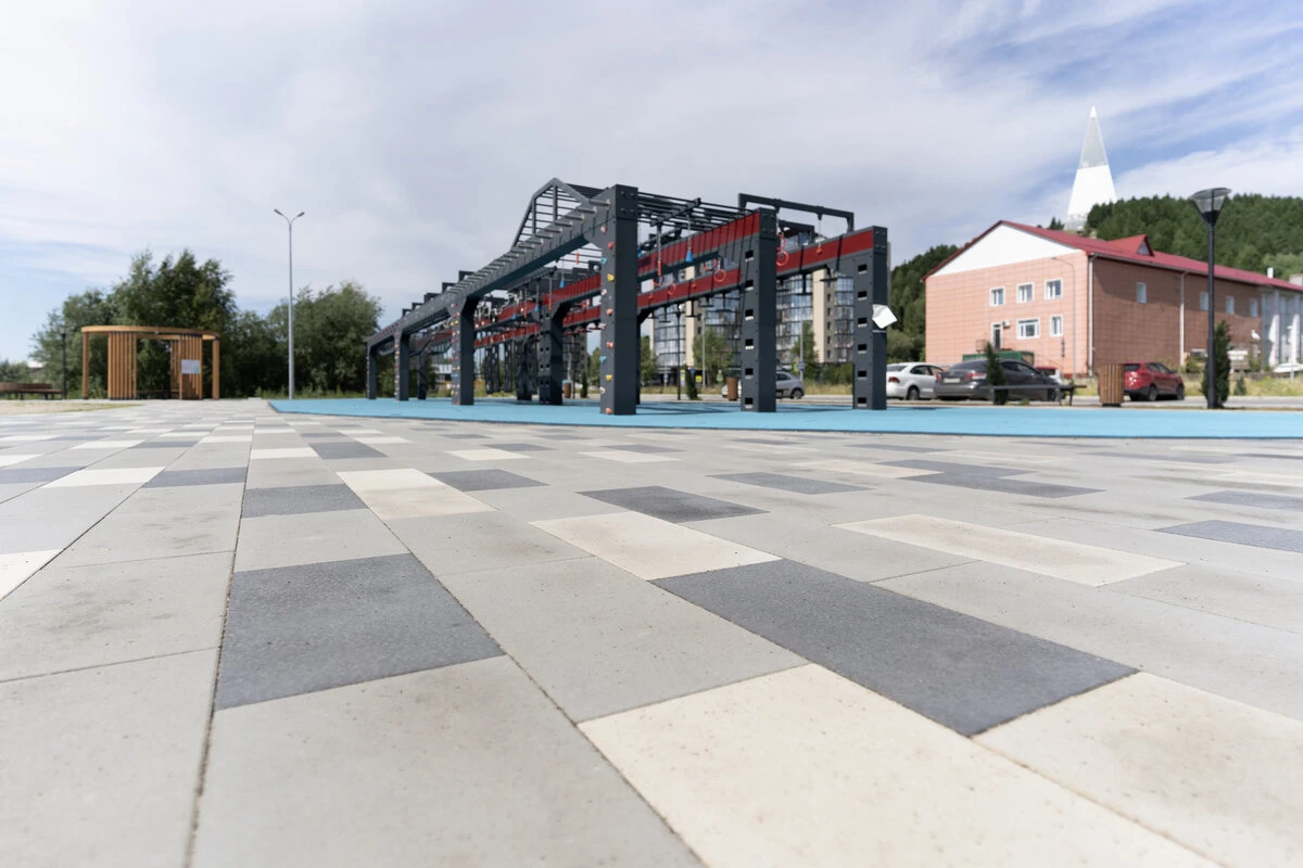 Набережная реки Иртыш в Ханты-Мансийске в районе восточной объездной дороги — еще один проект с нестандартной укладкой тротуарной плитки «Поревит». Основная идея — создать место, где можно активно провести свободное время.