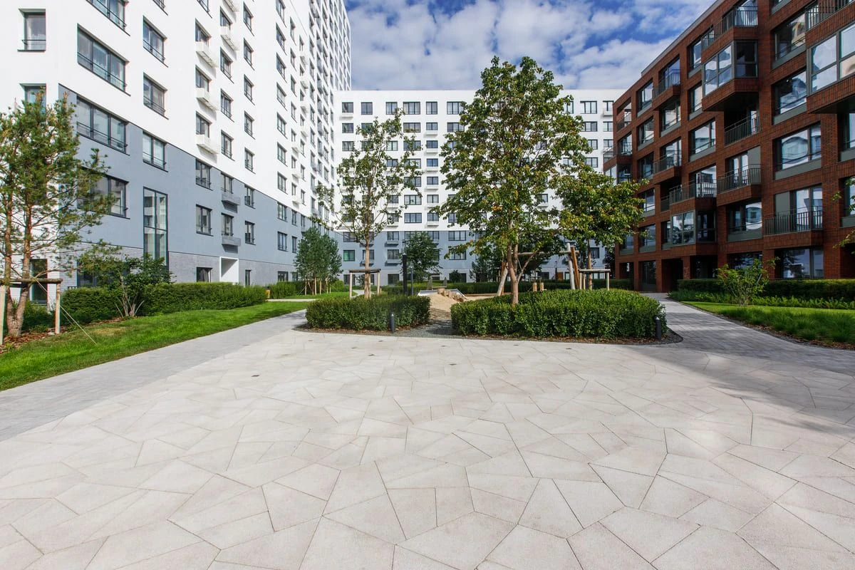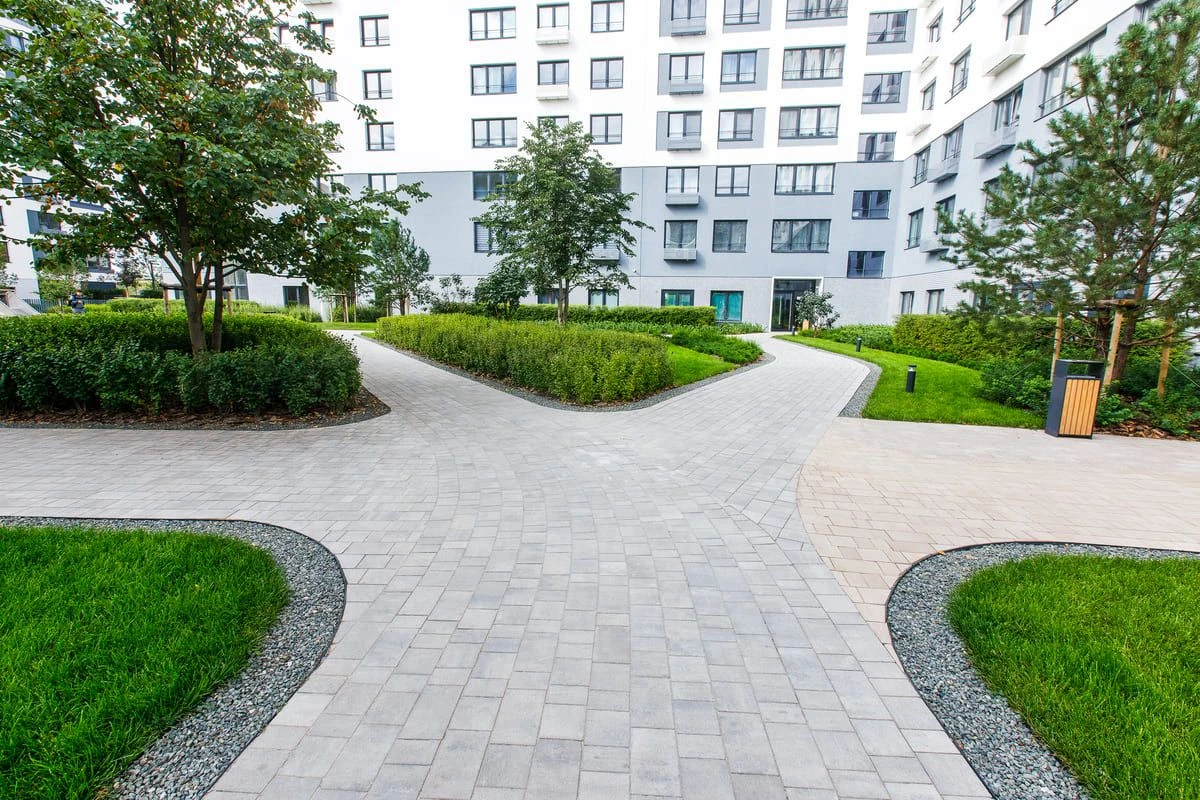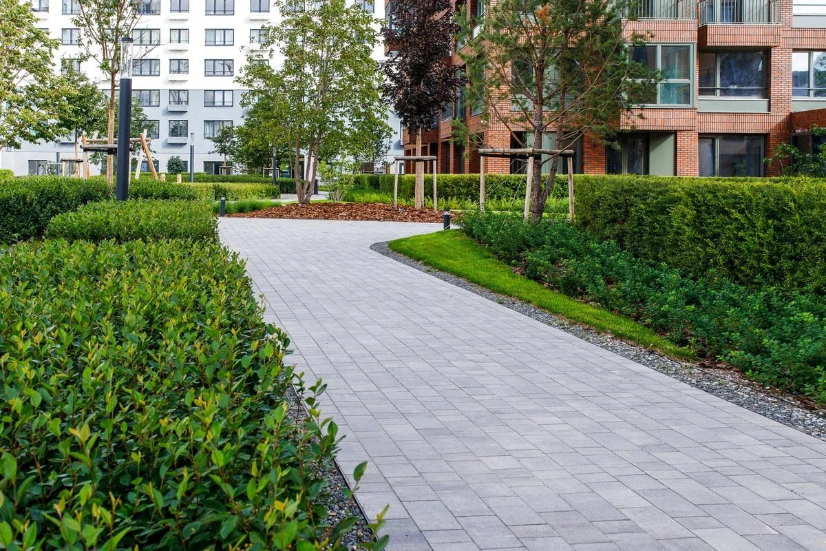Благоустройство в Жилом комплексе "Европейский квартал" выполнено с помощью плитки: